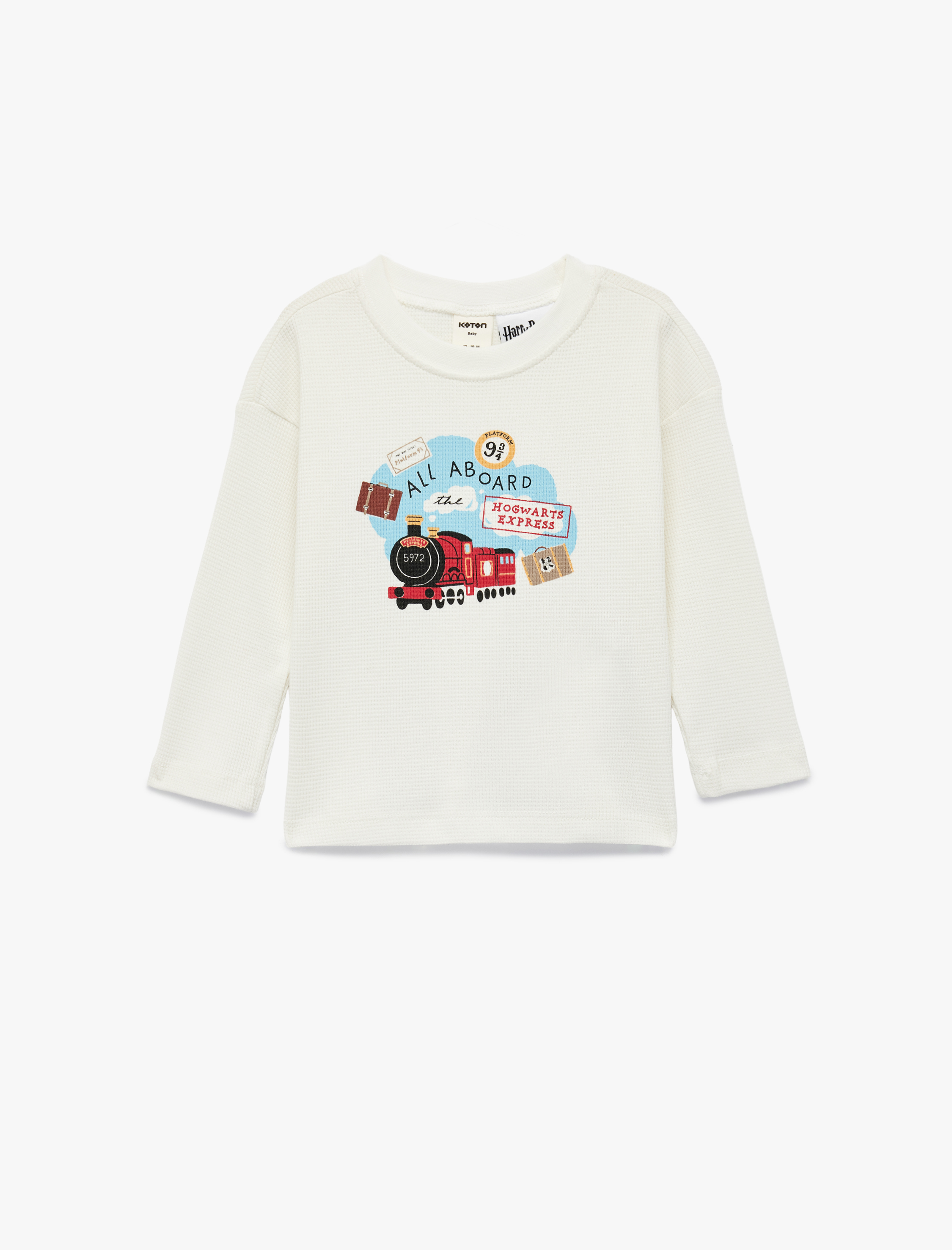Erkek Bebek Harry Potter Baskılı Uzun Kollu Bisiklet Yaka Lisanslı Oversize Tişört