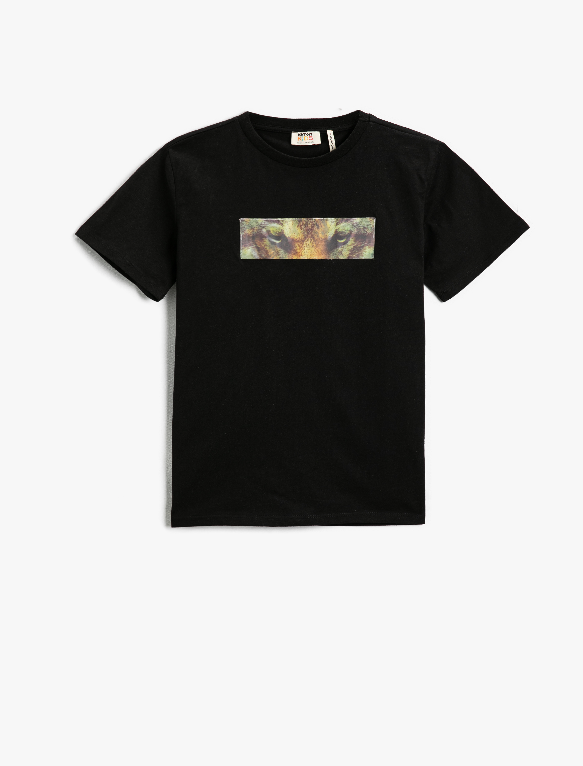 Erkek Çocuk Hayvan Baskılı Kısa Kollu Tişört Pamuklu