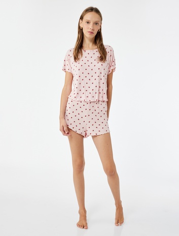 Pamuklu Kiraz Desenli Mini Şort Pijama Altı