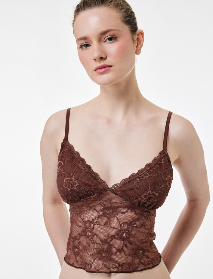 V Yaka Dantel Detaylı Askılı Pijama Üstü