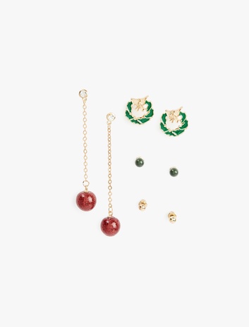 Çok Renkli Zincirli Yılbaşı Temalı 4'lü Küpe Seti Sepete Ekle