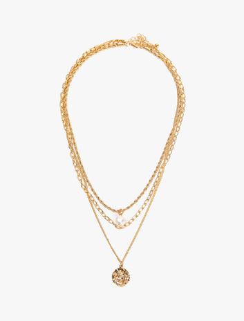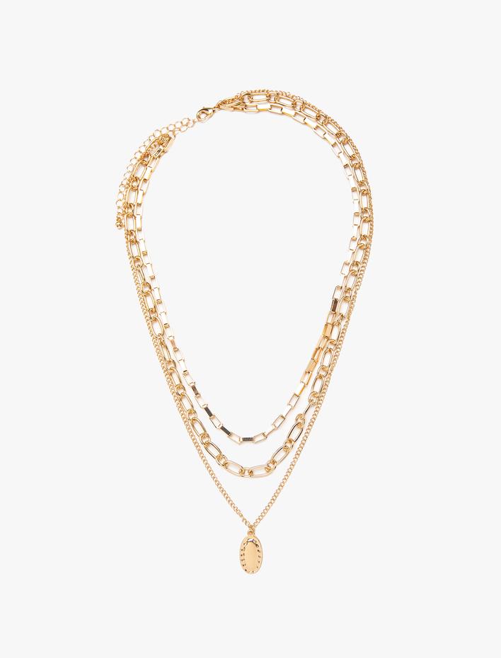 Katlı Zincir Kolye İnci Charmlı Madalyon Uçlu Sepete Ekle