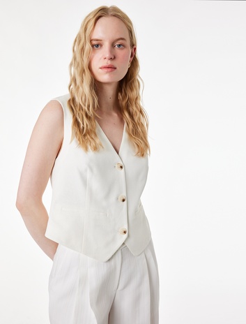 { "id": "8684846895284", "name": "V Yaka Kolsuz Düğmeli Cep Detaylı Keten Karışımlı Yelek", "taxonomy":["CITY FASHION","BUSINESS","WOMEN","BLAZERS","VESTS"], "currency": "TRY", "unit_price": 1299.99 , "unit_sale_price": 1299.99 , "url": "https://www.koton.com/v-yaka-kolsuz-dugmeli-cep-detayli-keten-karisimli-yelek-ekru-4105471-2/", "stock": 116, "color": "KIRIK BEYAZ", "size": "40", "product_image_url": "https://ktnimg2.mncdn.com/products/2026/02/26/3196173/2345fff9-81de-47c7-803e-2342fd7bac70_size870x1142.jpg" }