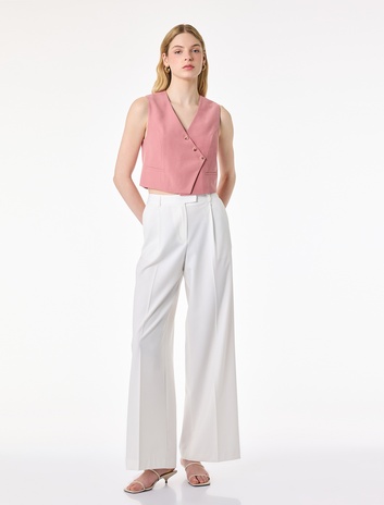 Slim Fit Kalın Askılı Yanları Gipe Detaylı Düğmeli Crop Keten Yelek