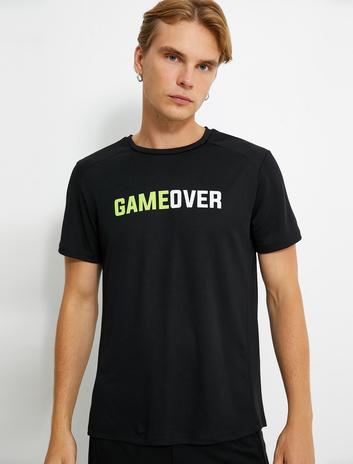 Spor Tişört Slogan Baskılı Bisiklet Yaka Kısa Kollu