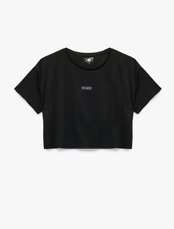 Crop Tişört Baskılı Bisiklet Yaka Kısa Kollu Sepete Ekle