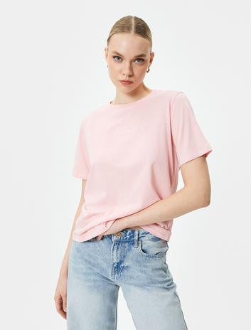 Fiyonk İşleme Detaylı Bisiklet Yaka Kısa Kollu Viskon Tişört