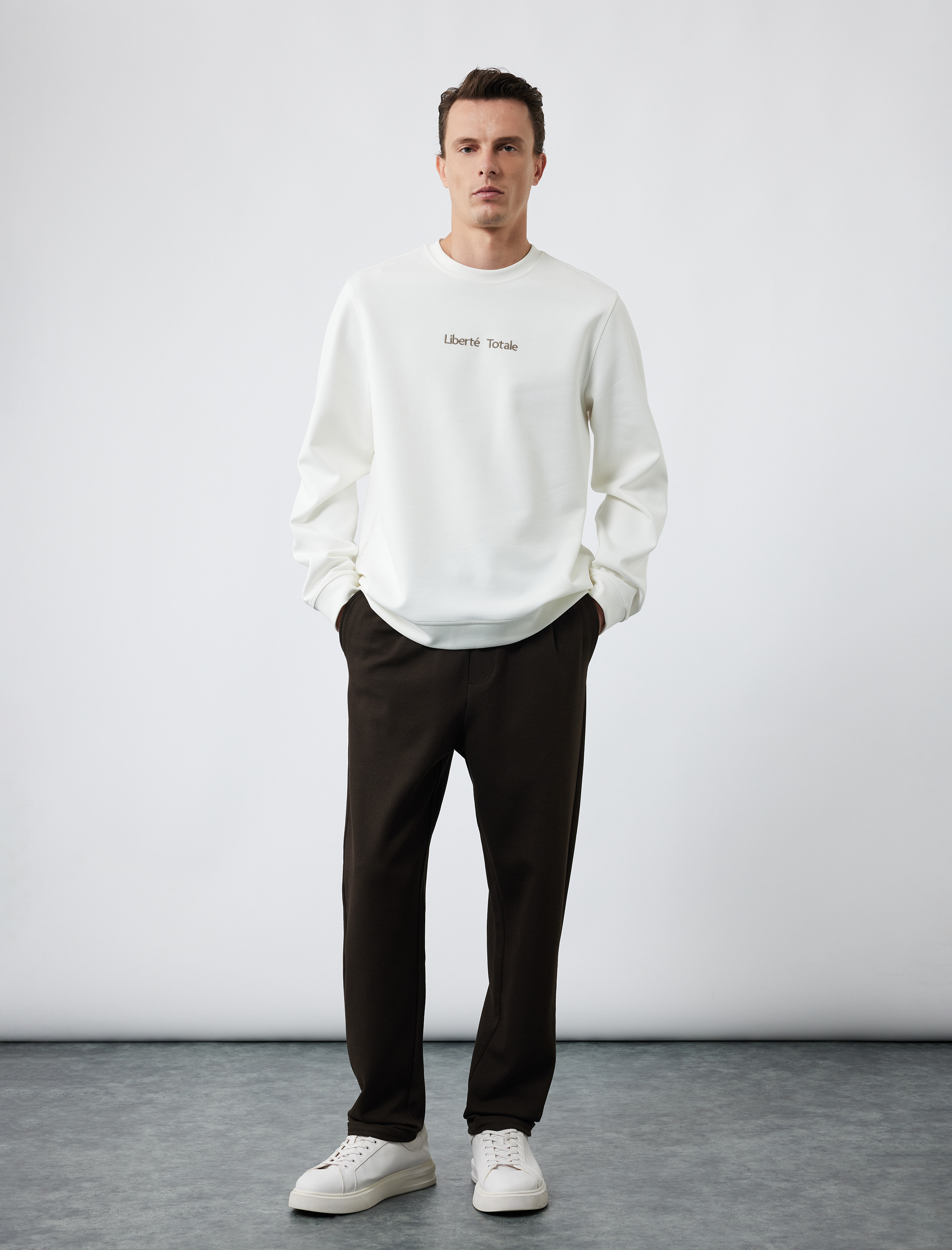 İşleme Detaylı Uzun Kollu Bisiklet Yaka Sweatshirt