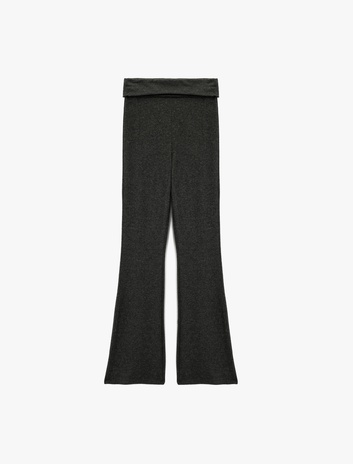 Viskon Karışımlı Katlı Yüksek Bel İspanyol Paça Tayt Pantolon Sepete Ekle