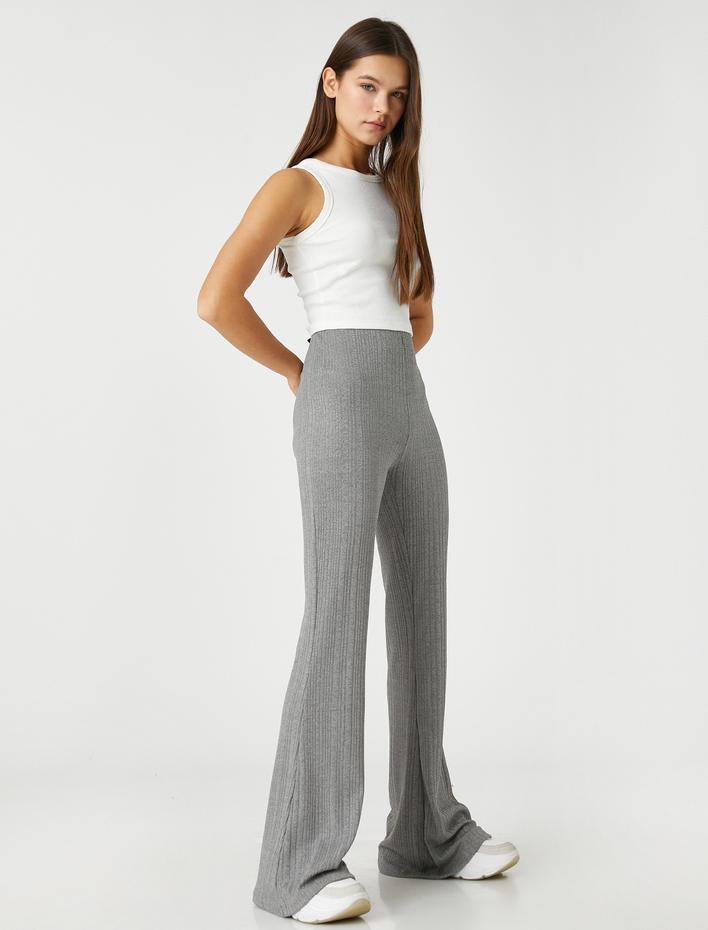 Yüksek Bel Lastikli İspanyol Paça Viskon Karışımlı Tayt Pantolon