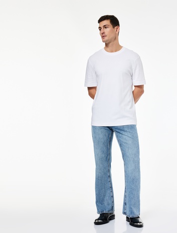 Rahat Kalıp Düz Paça Cepli Yıkamalı Jean Pantolon - Loose Straight Fit Jean