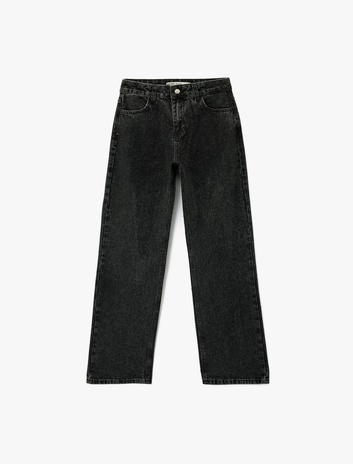 Düğmeli Cepli Pamuklu Normal Bel Düz Paça Taşlı Jean Pantolon - Straight Fit Jean Sepete Ekle