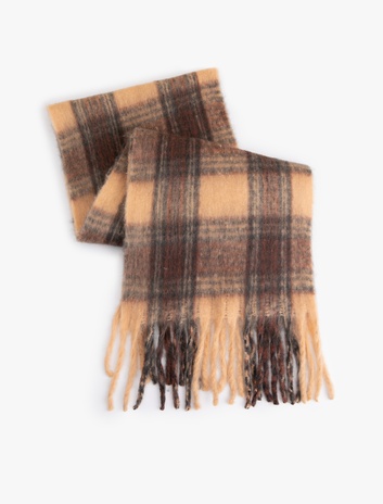 Yumuşak Dokulu Ekoseli Püsküllü Uzun Atkı Sepete Ekle