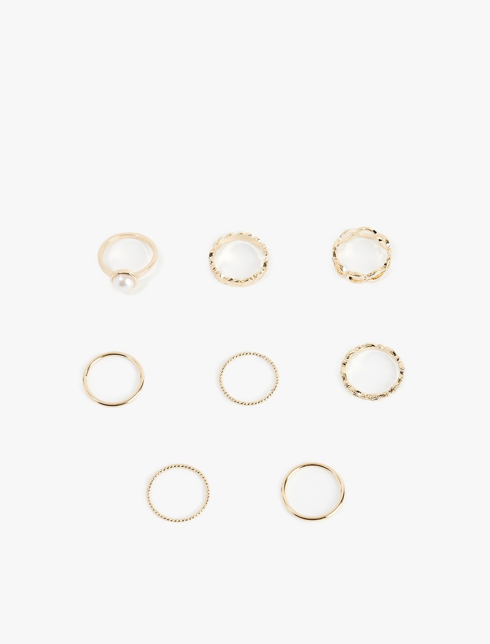 Kadın Taşlı İnci Detaylı 7'li Yüzük Seti