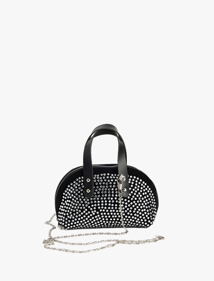 Zincir Askılı Metal Aksesuarlı Taşlı Mini Çanta Sepete Ekle