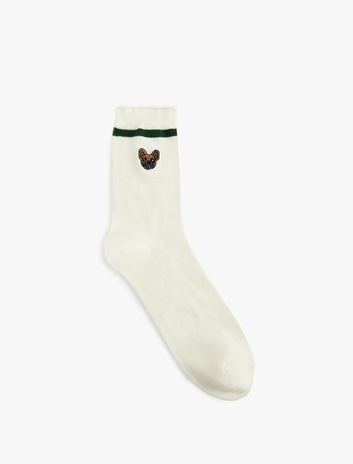 Kadın Köpek İşlemeli Pamuklu Soket Çorap