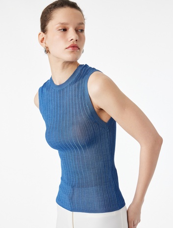 Bisiklet Yaka Kolsuz Triko Bluz Sepete Ekle