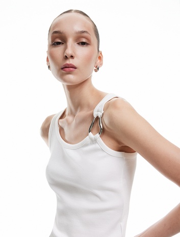 Asimetrik Yaka Metal Aksesuarlı Dar Kesim Kolsuz Bluz