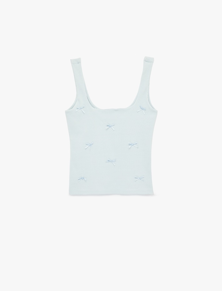 Pamuklu Kare Yaka Fiyonklu Kalın Askılı Bluz Sepete Ekle