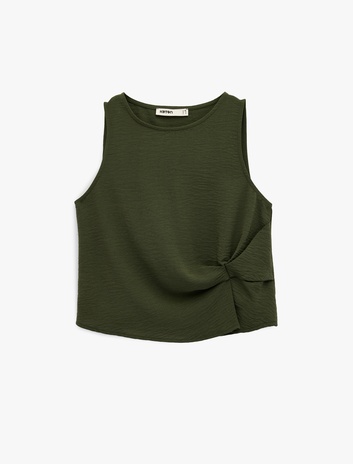 Drape Detaylı Bisiklet Yaka Kolsuz Bluz