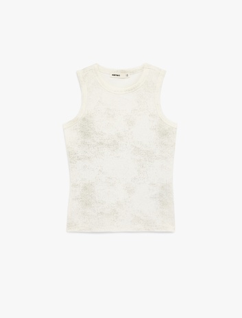 Simli Soyut Baskılı Bisiklet Yaka Slim Fit Kolsuz Bluz Sepete Ekle