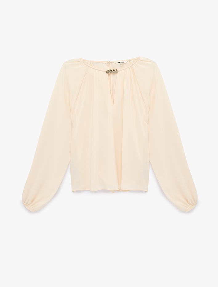 Uzun Balon Kollu Aksesuar Detaylı Şifon Bluz Sepete Ekle