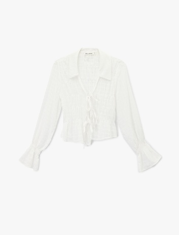 Bol Kalıp Uzun Kollu Yuvarlak Bağcıklı Yaka Balon Kol Gömlek Sepete Ekle