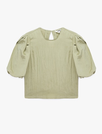 Bisiklet Yaka Kısa Balon Kollu Saten Bluz