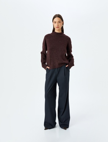 Uzun Kollu Dik Yaka Basic Triko Kazak