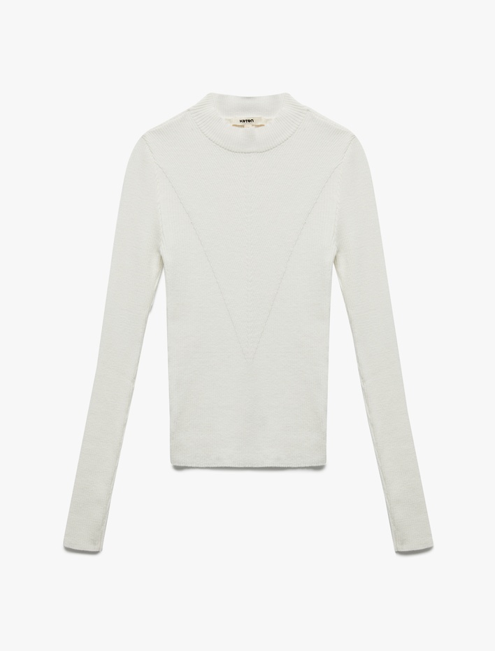 Dik Yaka Basic Fitilli Uzun Kollu Triko Kazak