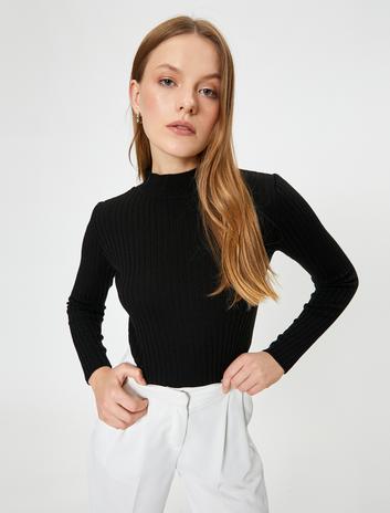 Dik Yaka Ribanalı Triko Kazak Kaşmir Dokulu Sepete Ekle