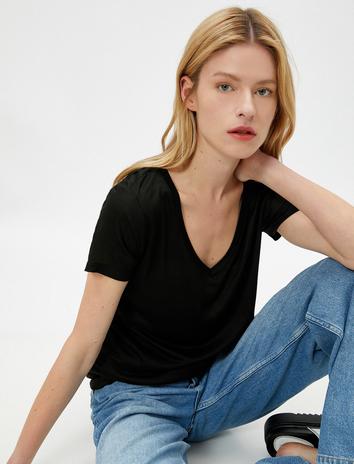V Yaka Bol Kesim Basic Tişört Sepete Ekle