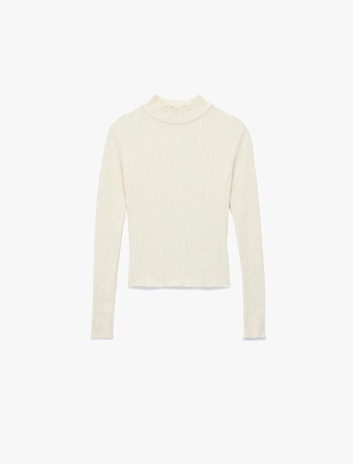 Fırfır Detaylı Dik Yaka Uzun Kollu Triko Kazak
