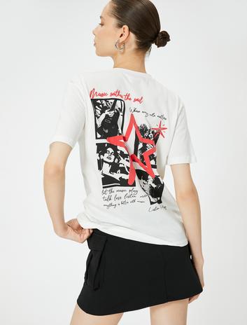 Arkası Baskılı Tişört Kısa Kollu Bisiklet Yaka Rahat Kalıp Pamuklu