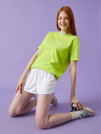 Pamuklu Bisiklet Yaka Kısa Kollu Yazılı Baskılı Crop Tişört Sepete Ekle