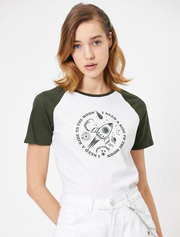 Bisiklet Yaka Kısa Kollu Baskılı Tişört Sepete Ekle