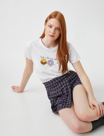 Baskılı Kısa Kollu Pamuklu Tişört Sepete Ekle