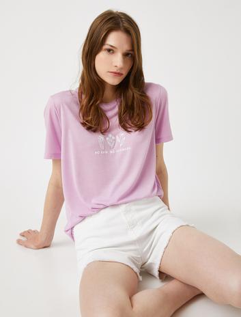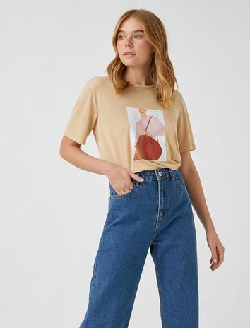 Bisiklet Yaka Kısa Kollu Baskılı Tişört Sepete Ekle