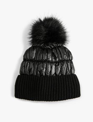 Kadın Kapitone Bere Katlamalı Ponpon Detaylı