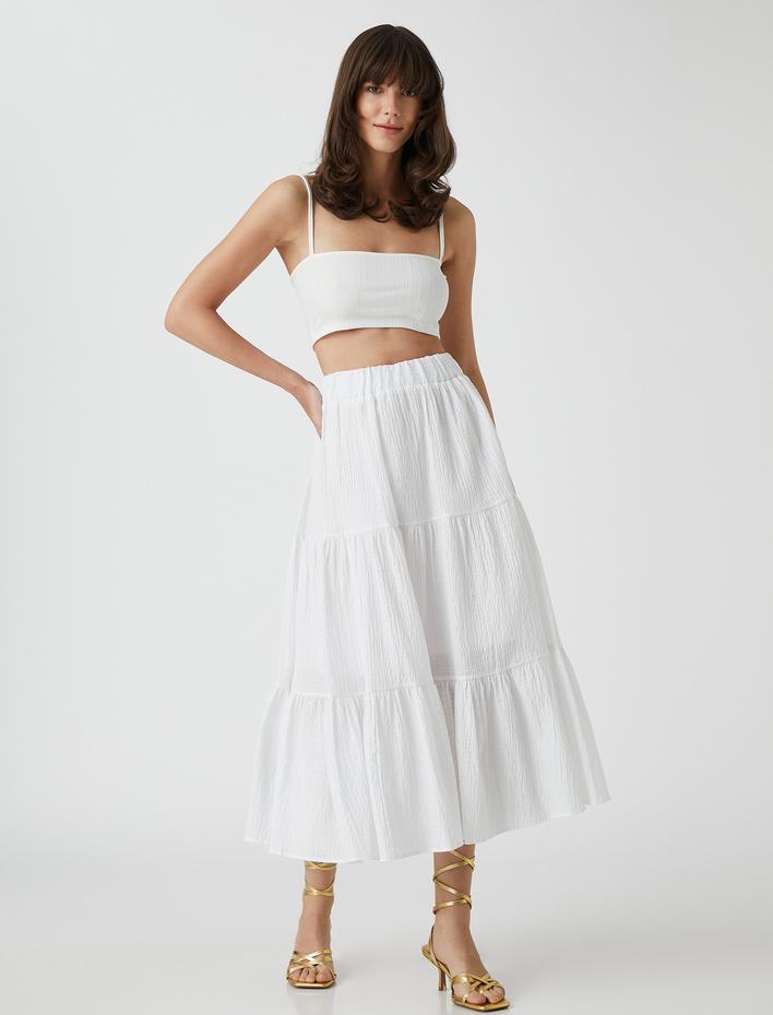 Bağlama Detaylı Pamuklu A Kesim Uzun Etek Sepete Ekle