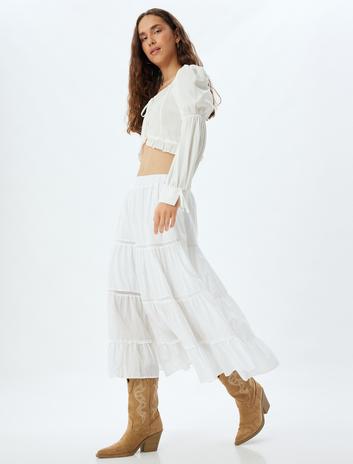Pamuklu A Kesim Dantel Detaylı Midi Etek Sepete Ekle