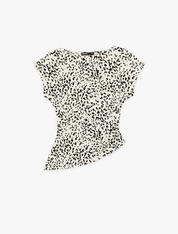 Drape Detaylı Kayık Yuvarlak Yaka Kolsuz Desenli Bluz Sepete Ekle