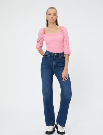 Salaş Crop Bluz Balon Kollu Kare Yaka