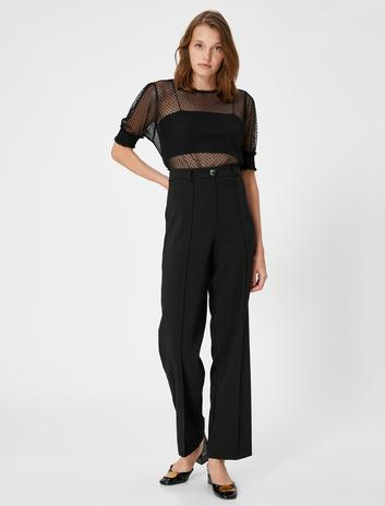 Transparan Bluz Dik Yaka Uzun Kollu Dikiş Detaylı Slim Fit