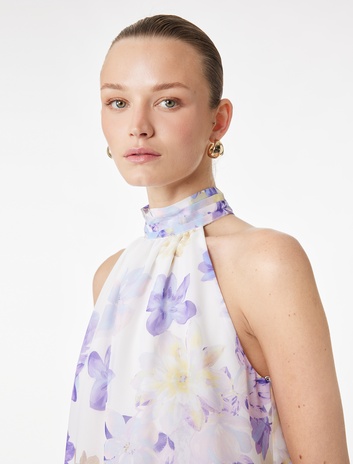 Kolsuz Çiçekli Halter Yaka Şifon Bluz Sepete Ekle