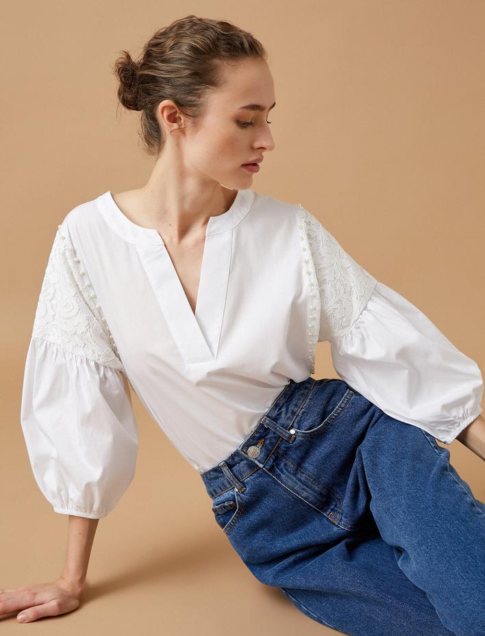 Sizi gündüzden geceye rahatlıkla taşıyan beyaz bluz modelleri, klasik görünümleriyle zamansız parçalar arasında ön plana çıkıyor. Minimalist görünümlerin kilit parçası beyaz bluz tasarımları dantel ve fistolu detaylar ile en parlak dönemini yaşıyor. Etek bluz takım kombinlerinin ve ofis görünümlerinin kilit parçası beyaz bluz tasarımları, düğmeli kruvaze bluz çeşitleri ile bu sezon sevilerek tercih ediliyor. Düşük omuz, balon kol bluz tasarımları ise romantik bir kombin için vazgeçilmez parçalar arasında yer alıyor. Balon kol bluz tasarımlarına crop ve dökümlü formlar eşlik ederken yaz aylarında midi katlı etekler ve sandaletler kombininizi tamamlıyor. Moda severler bluz kadın modelleri ile sayısız kombin yaratmayı çok seviyor.