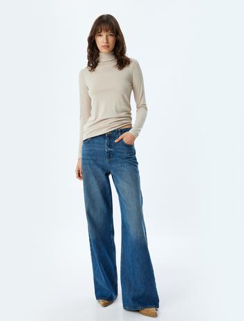 Dik Yaka Fitilli Body Uzun Kollu Slim Fit Pamuklu