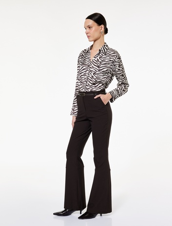 Uzun Kollu Düğmeli Zebra Desenli Klasik Yaka Saten Gömlek