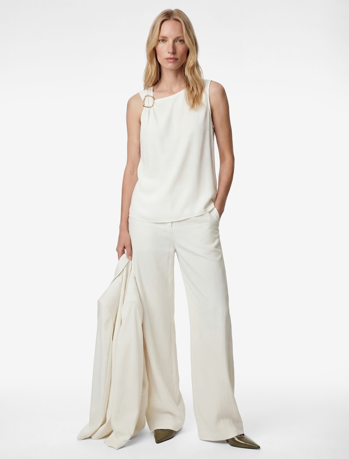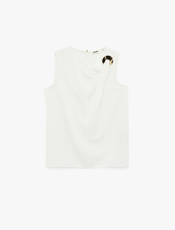 Bisiklet Yaka Kolsuz Metal Aksesuarlı Viskon Bluz Sepete Ekle