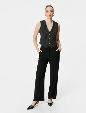 Blazer Yelek V Yaka Metal Düğmeli Cepli
